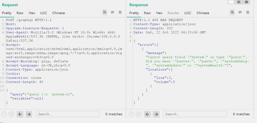 靶场里还提到了一种信息泄漏是GraphQL Field Suggestions,这个主要是用在当内省查询不被允许时,可以输入一个错误的字段,然后GraphQL会返回相似的字段;这个可发挥的空间应该不是很大🤔