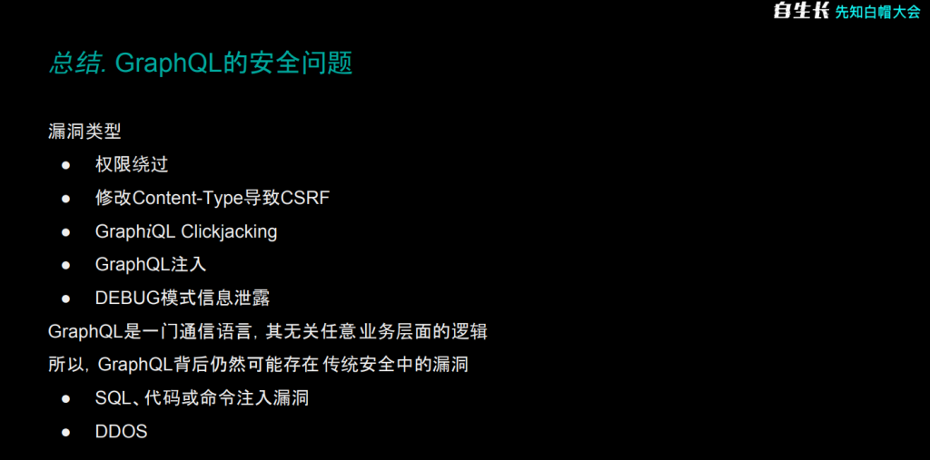 往届各类 CTF 比赛中也出现过不少GraphQL的考点,p神在先知白帽大会上也发表了相关安全议题