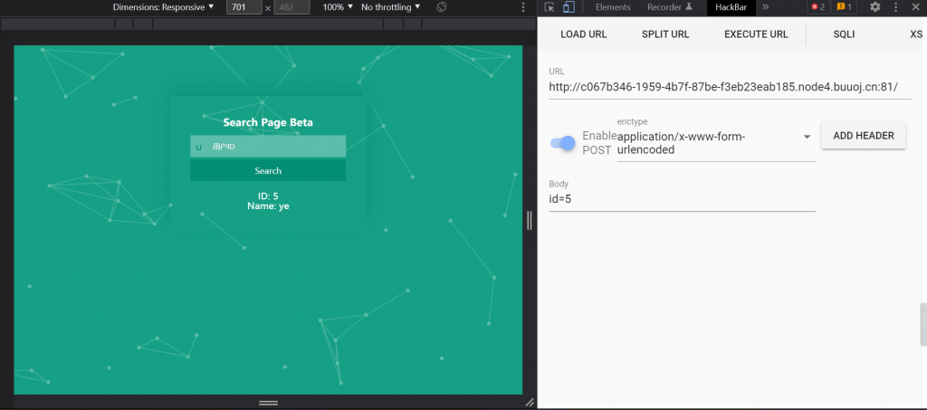 通过 POST 不同的id值来得到相应的查询信息,最多可以查到 6 ,再往后就是返回 DEBUG 信息