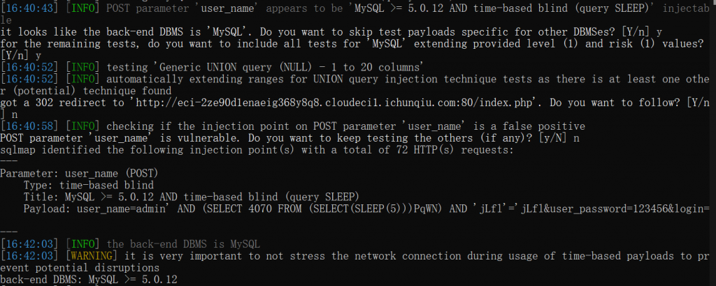 直接 sqlmap 读吧,这环境慢的要死,--file-read "/flag"