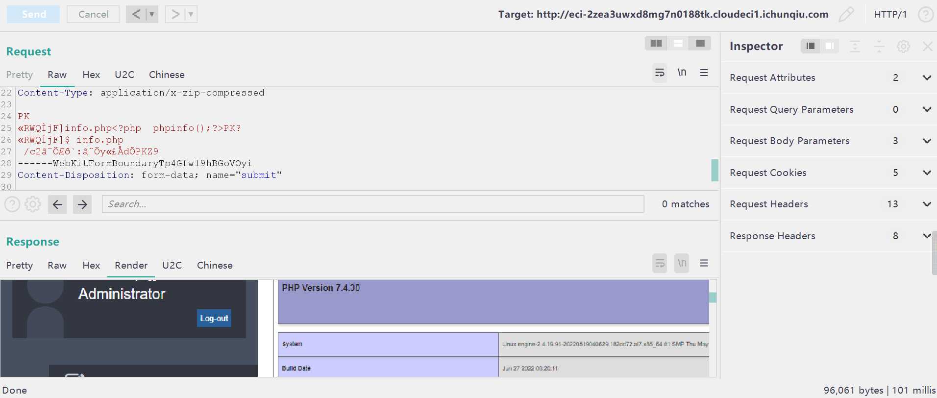 返回结果就在第二行的 body 里,所以直接cat /flag就行,想要纯净版的话,就在后面加个exit();