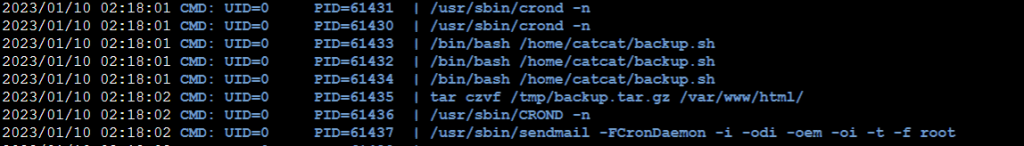 再用 pspy64 探一下,发现 root 会执行 /home/catcat/bashup.sh