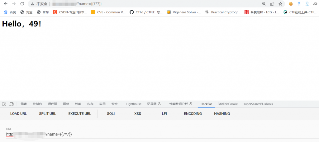 探测到 GET 方式参数 name,直接尝试 ?name={{7*7}}