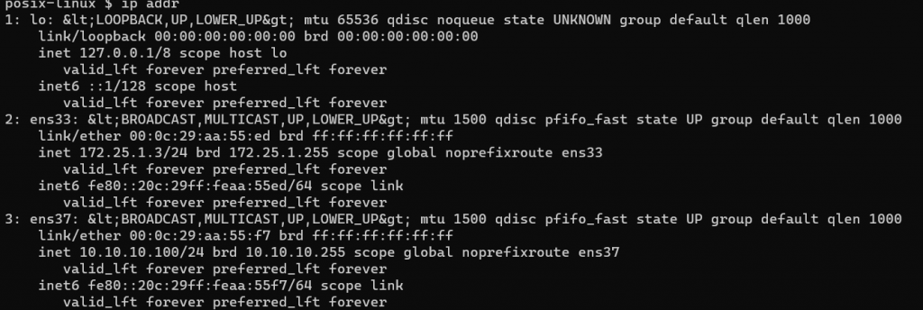 可以出网,查看 ip 配置情况,ifconfig 没有输出,换成 ip addr 发现双网卡