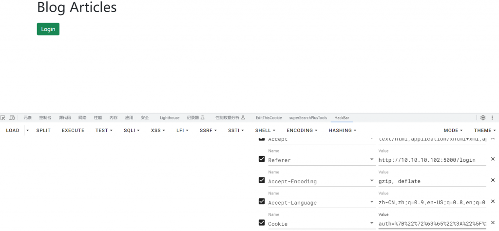 挂 socks 代理后访问,是个登录界面,Wappalyzer 探测为 Express + Node.js
