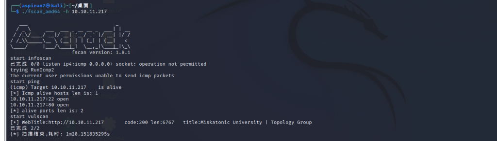 靶机开启后正常配置,fscan 先扫一下,发现 80/22 端口开放