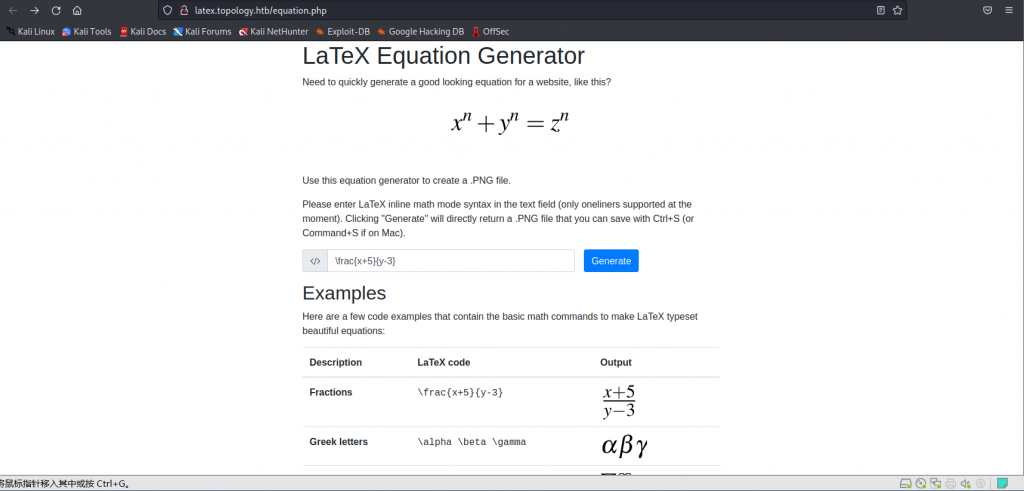 配置完后再次访问是个表达式生成器,按照给定的规则输进框里就会返回一张表达式图片