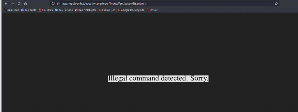 尝试 \input{/etc/passwd} 读取,但是发现被拦截了,应该是关键字检测