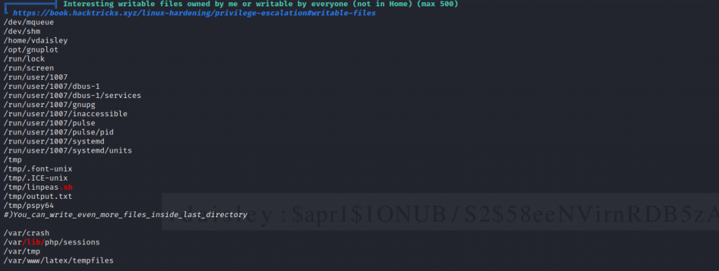 想办法提权,已经有人传了 pyps64 和 linpeas.sh,直接用就行了;先是 ./linpeas.sh > 123.txt