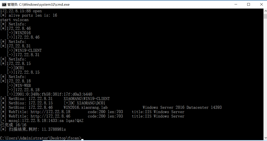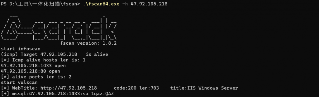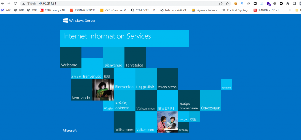 打开环境后是一个 IIS 初始界面,fscan 扫一下