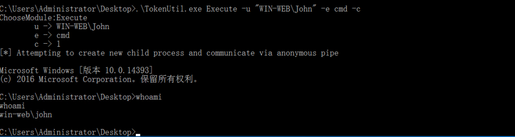 SharpToken.exe execute "WIN-WEB\John" cmd true