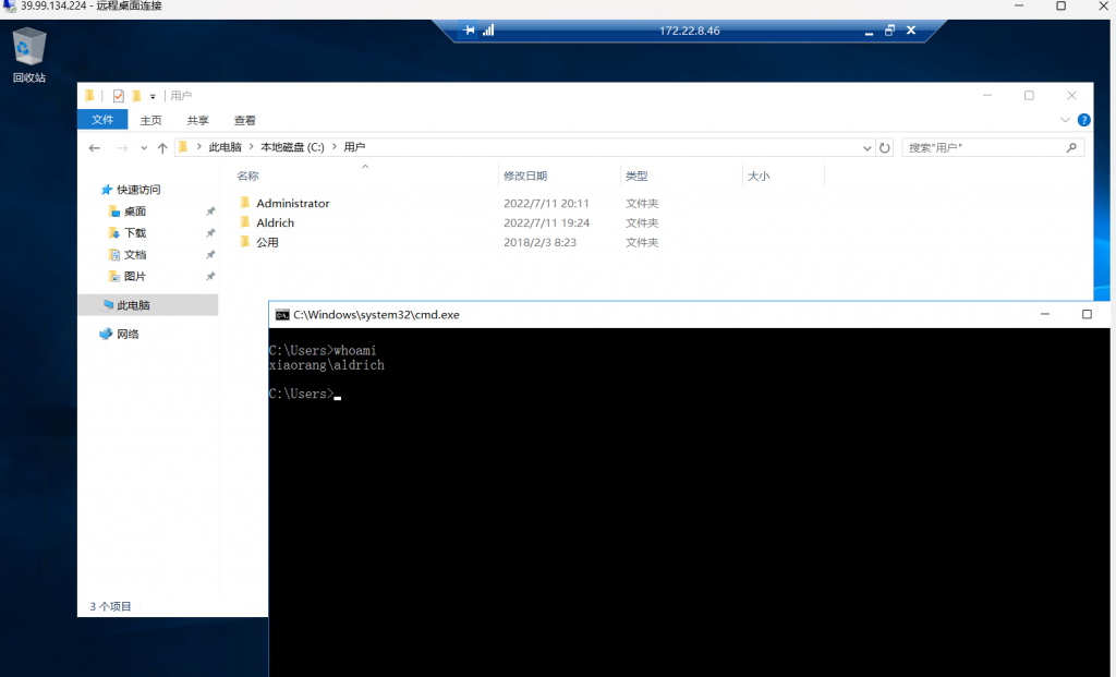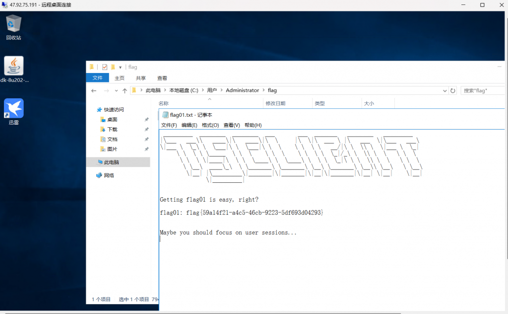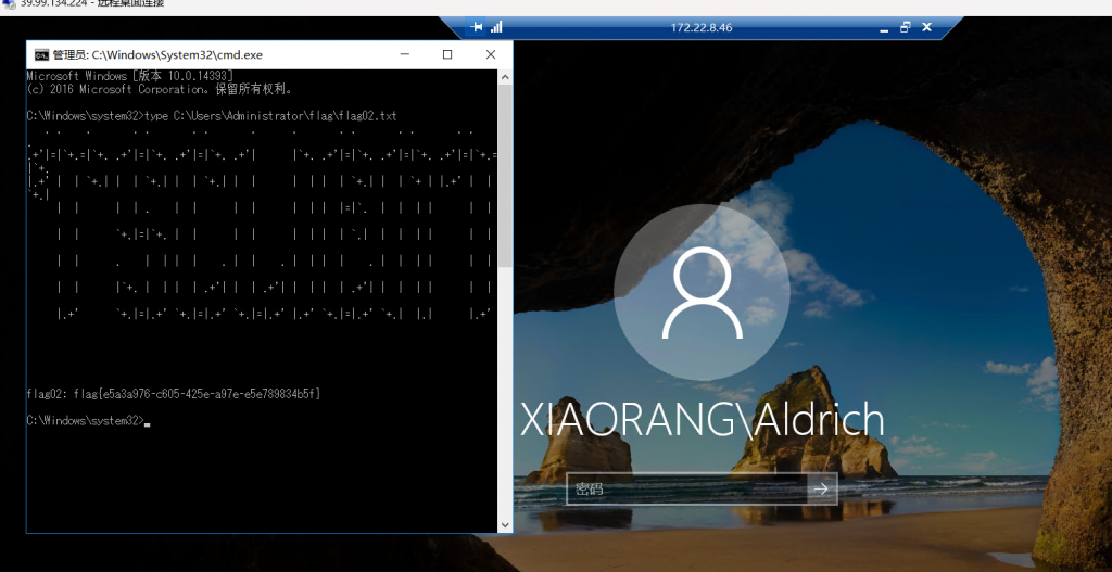 远程桌面连进去就可以,第一部分 flag 在 C:\Users\Administrator\flag 下