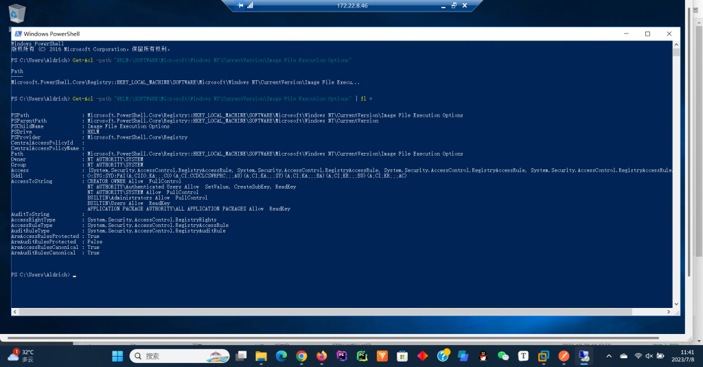 获取 HKLM:\SOFTWARE\Microsoft\Windows NT\CurrentVersion\Image File Execution Options 注册表下的 ACL 信息