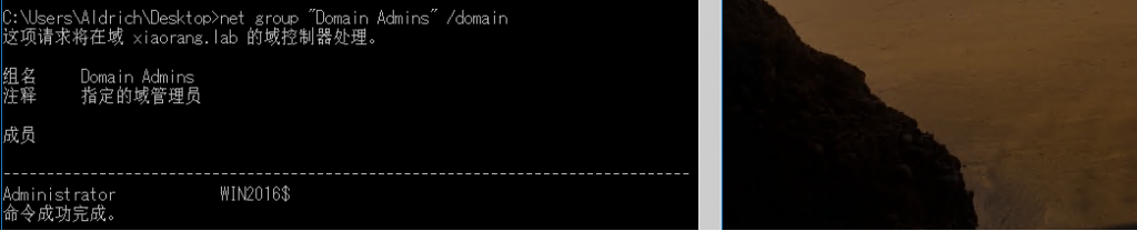 查看域管理员组 net group "Domain Admins" /domain, WIN2016$ 在里面