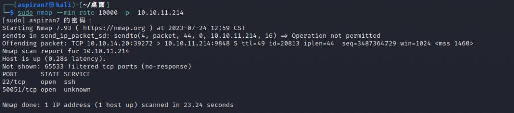 fscan 扫描啥也没扫出来,换成 nmap 再扫端口,发现 50051 开放