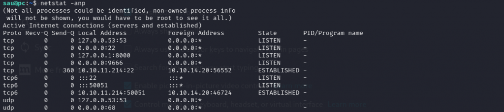 sau@pc:~$ find / -user root -perm -4000 -print 2>/dev/null