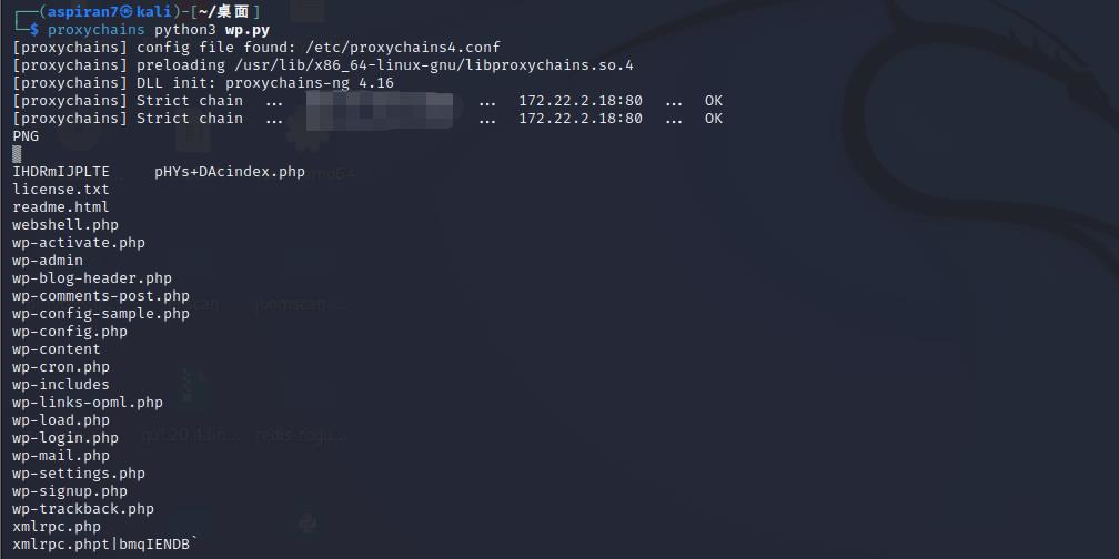 注意到 .18 是一个 wordpress 站点,可能存在突破口;在当前机器上传 NPC,kali 挂代理