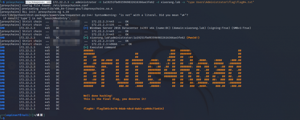 [*] 172.22.2.3 [+]DC XIAORANG\DC Windows Server 2016 Datacenter 14393